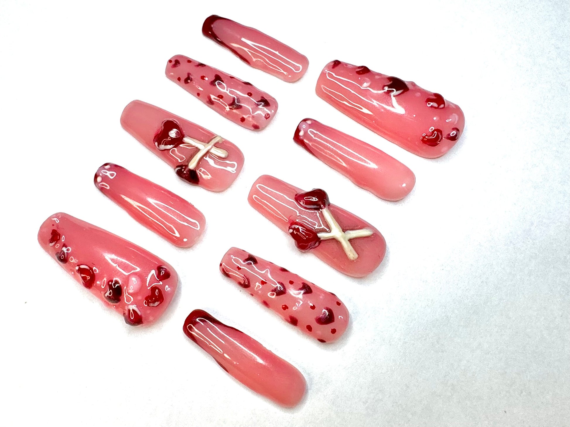 3D sculpted hearts, pops, featuring an array of pinks including a magenta cat-eye.