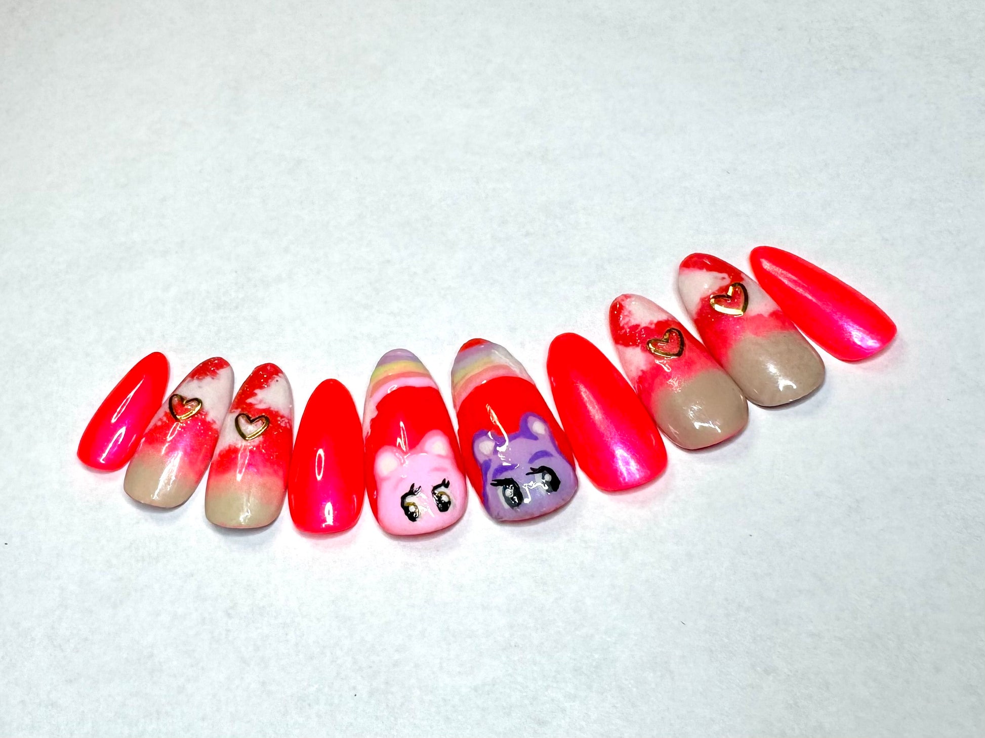 Included with each set: Double sided nail instruction/ aftercare card, Nail case, nail glue+mini prep kit with alcohol pad, Lip oil gloss mini.