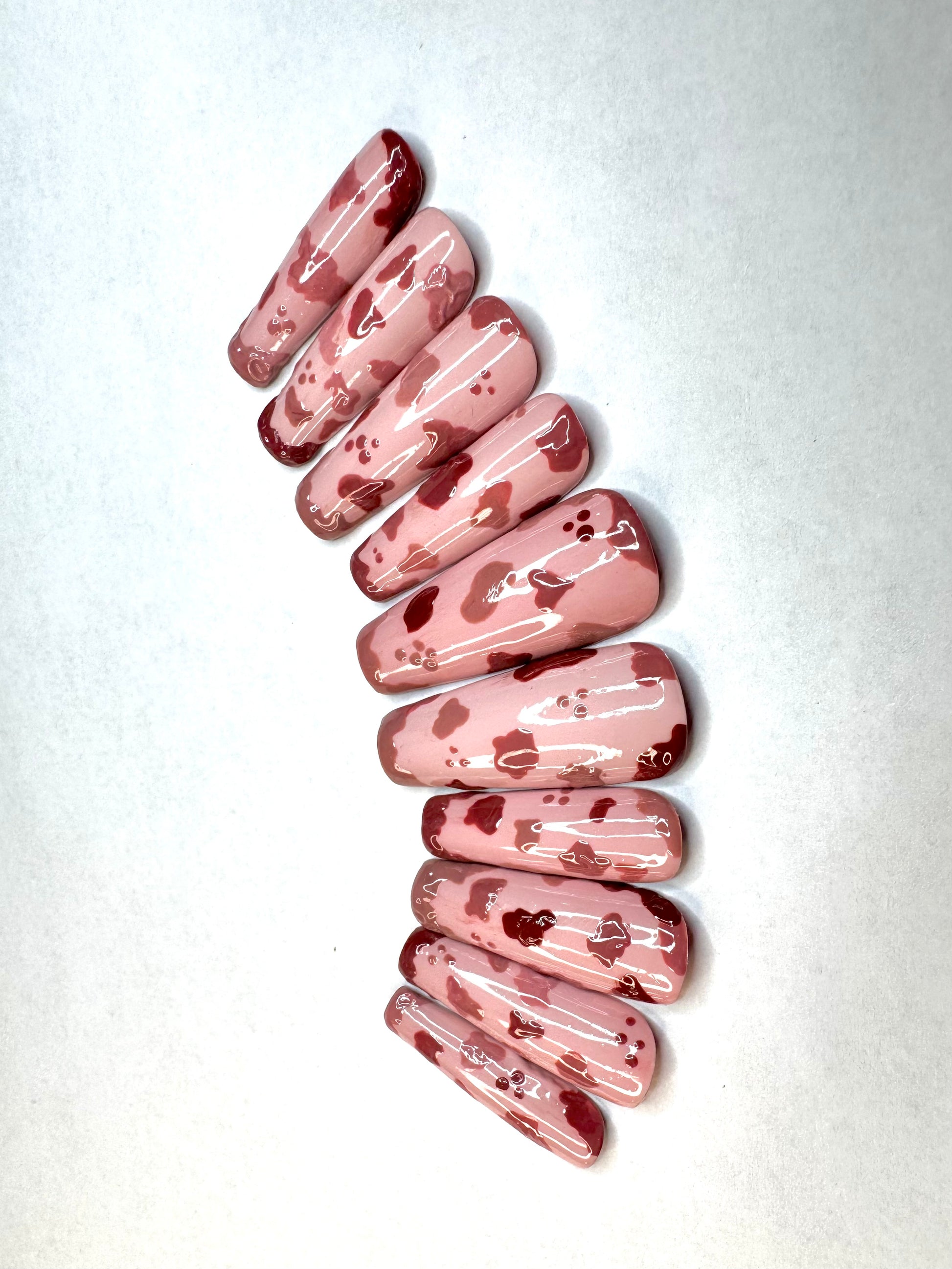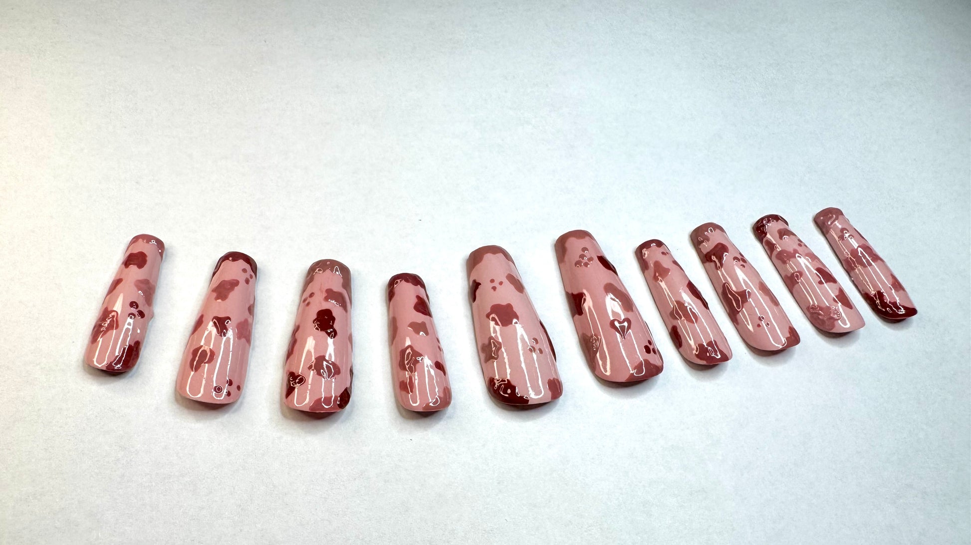 Included with each set: Double sided nail instruction/ aftercare card, Nail case, nail glue+mini prep kit with alcohol pad, Lip oil gloss mini.
