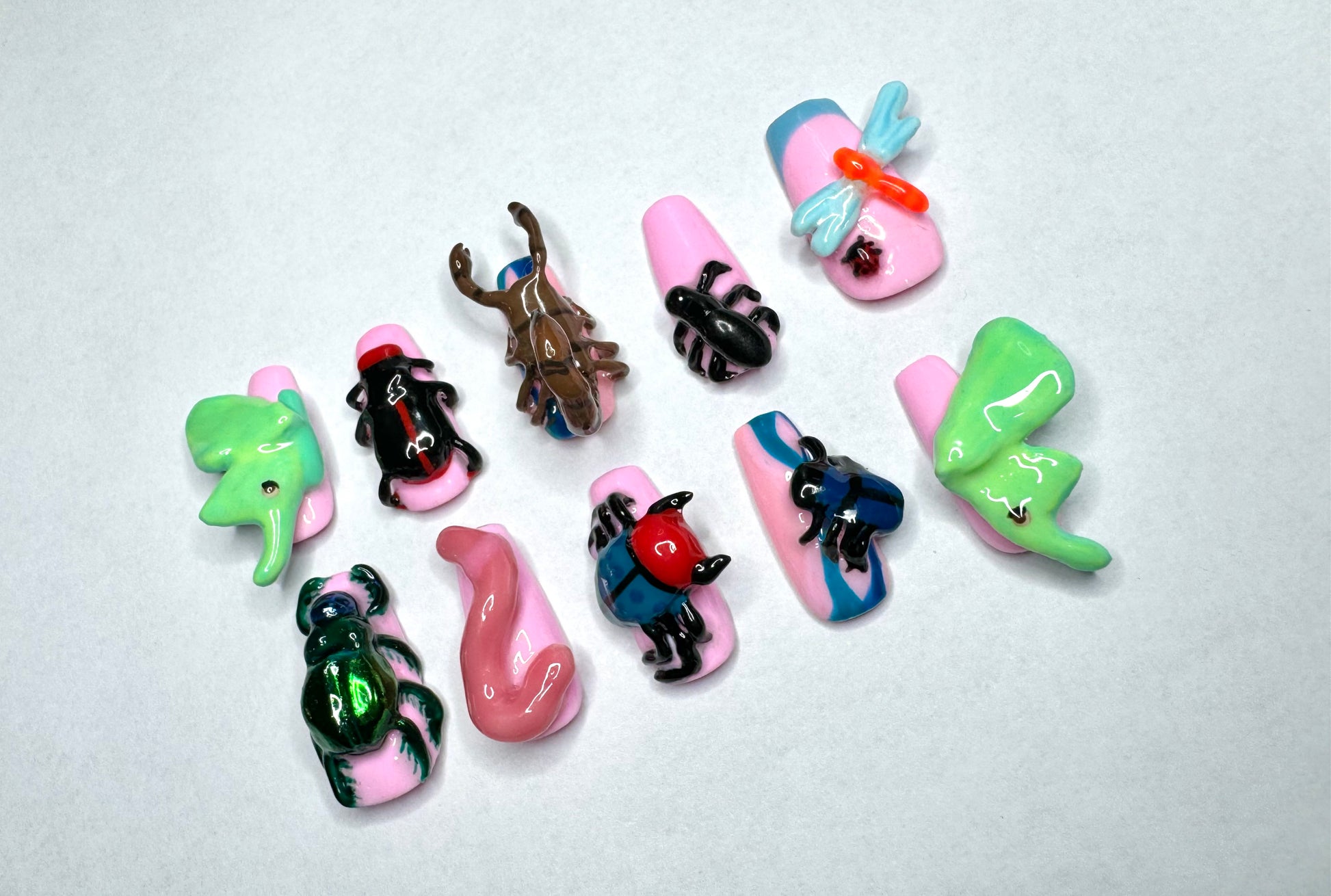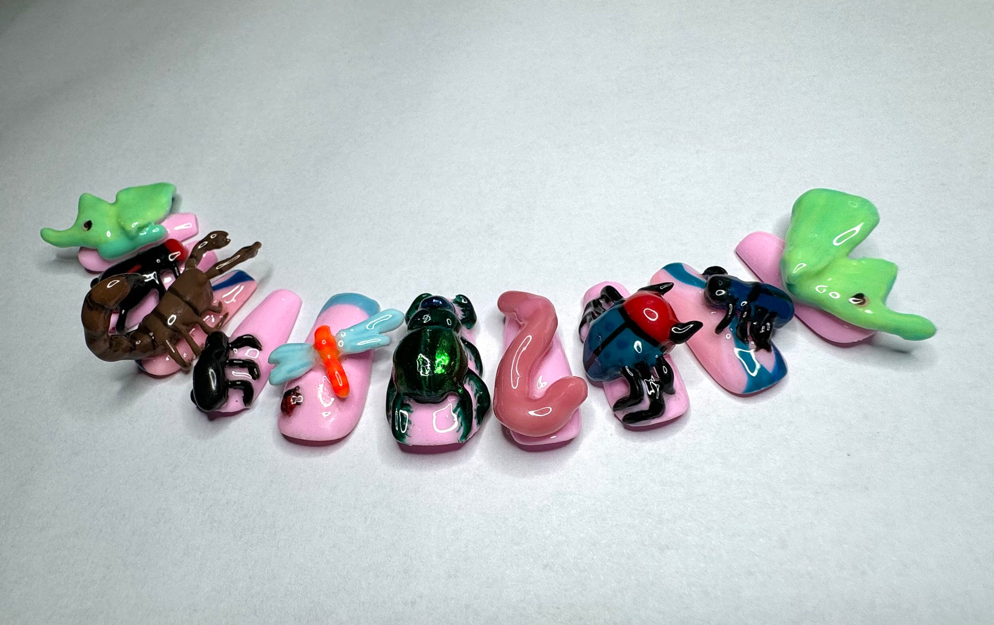 All.The.Bugs. all the entomology lovers out there this one is for you. Baby pink with 3D hand sculpted bugs with chrome details, and bright color accents.